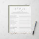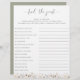 Wildblume Baby Shower, Finden Sie das Gast-Spielblatt mit koordinierend grünen Farbrücken.