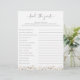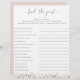 Wildblume Baby Shower, Finden Sie das Gast-Spielblatt mit koordinierender rosa Farbunterlage.