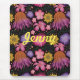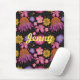 Die hübsche Gemusterte Wildblume Black Floral Mousepad ist ein Blumenmousepad mit Farben wie Rosa und Gelb und enthält Blume wie Sonnenblumen, Wandleuchter und Mohn
