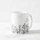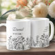 Wildblume Hochzeitsgeschenk Tasse für jeden in Ihrer Hochzeitsfeier. Leicht zu personalisieren eine Tasse Ihren Trauzeuge, Trauzeugen etc. und Sie können auch den Namen der Braut und Bräutigam und deren Hochzeitstag auf der anderen Seite hinzufügen. Einfaches und elegantes boho blumengeschmücktes Design mit gezeichnet Wildblumen. Sie können auch die Farben im Designwerkzeug bearbeiten, wo Sie die Blume und den Text in eine beliebige Farbe ändern können.