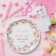 Aquarellfarbene Wildblume Blumenrosa elegante Mädchen Duschpapier Teller. Garten, winzige Blume, Babydusche.