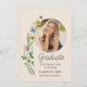 Feiern Sie Ihren Abschluss 2025 mit einer boho Wildblume Abschluss Ankündigung! Dieses atemberaubende Design zeichnet sich durch Aquarellfarben-Wildblumen auf einem weichen cremefarbenen Hintergrund und eine stilvolle Schrift-Typografie aus. Einfach mit Ihrem Foto und Ihren Details anpassbar. Original Watercolor bei Michele Davies.