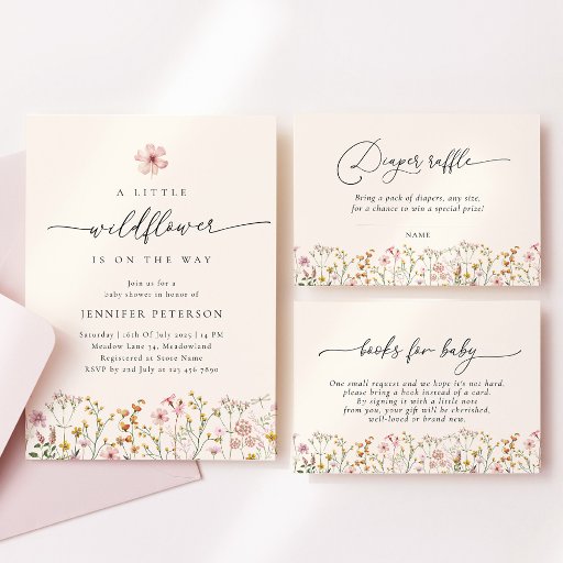 Feiern Sie die Mama-to-be mit dieser bezaubernden "Little Wildblume" Babydusche-Einladung! Mit sanften Aquarellfarben in Pastelltönen und einer eleganten Schriftzeichen ist diese Einladung ideal für eine Frühjahr- oder Gartendusche.