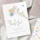 Feine Wildblumen Wiesen-Bouquet mit Schmetterlingen und pastellfarbenen Aquarellblüten elegante Frühling-oder Sommergarten-Liebe im blühenden Brautparty Dank druckbaren Karte mit whimsical modernen Kalligraphie-Skript über einem klaren weißen Hintergrund. Wildblume auf der Rückseite. Digitaler Download verfügbar.
