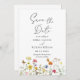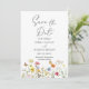 Farbenfrohe Wildblumen und Schmetterlinge schaffen ein rustikales, botanisches Design, um die Daten zu speichern. Gelbe, orangefarbene, rosa und blaue Blumen tanzen über den Boden. Die Serifen und kursiven Schriftart ergänzen dieses wunderschön klassische Design.