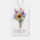 Sagen Sie "Danke" zu Ihrem Brautparty, Babydusche, Geburtstag oder Hochzeitsgäste mit diesen rustikalen, schicken Geschenketiker. Mit einem Strauß von Wildblumen mit Sonnenblumen, Babyatmen und Lavendel. Passen Sie Ihre Daten an.