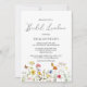 Farbenfrohe Wildblumen und Schmetterlinge schaffen ein rustikales, botanisches Design für Ihre Brautmittags-Einladungen. Gelbe, orangefarbene, rosa und blaue Blumen tanzen über den Boden. Die Serifen und kursiven Schriftart ergänzen dieses wunderschön klassische Design.
