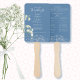 Dieser Programmfan mit feinen, weißen Wildblumen auf staubblauem Hintergrund ist ein guter Weg, um Ihre Gäste willkommen zu heißen und sie bei warmem Wetter cool behalten. Die Vorderseite dankt ihnen für ihr Kommen. Die andere Seite zeigt Ihre Zeremonie Details und Ihre Hochzeitsfeier. Alle Felder können auf Ihre Anforderungen zugeschnitten werden