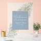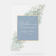 Herzlich willkommen bei Ihren Gästen mit diesem modernen, eleganten Hochzeitszeichen. Mit einem schicken, staubblauen Hintergrund mit böhmischen Wildblumen und glänzenden Goldakzenten verbindet es rustikalen Charme mit Vintagem Flair. Ideal für einen angenehmen und einladenden Ton an Ihrem besonderen Tag!