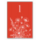 Stellen Sie Ihrer Hochzeit eine Touch von ruhiger Schönheit mit unseren Tischnummern "Wildblume Elegance" vor. Jedes Stück zeichnet sich durch ein zartes Design weißer Wildblumen aus, das ein Gefühl zeitloser Romantik und Eleganz hervorruft. Das sanfte Blumenmuster und die klare Nummerierung führen Ihre Gäste stilvoll an. Farbrotes Orange