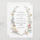 Hochzeitseinladung mit einem Aquarellkranz Vintager inspirierter Wildblumen. Passen Sie Ihre Daten an.