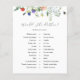 Brautparty Spielkarte mit einer Aquarellkaskade von Wildblumen. Eine unterhaltsame Art, mit Duschgästen zu interagieren.
