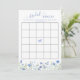 Planen Sie ein besonderes Brautparty? Diese hübsche Bingo-Spielkarte mit Blumenmuster ist mit blauen Aquarellfarben-Blume, einem Schmetterling und einer stilvollen Schrift-Typografie dekoriert. Original Wasserfarbe © Michele Davies.