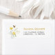 Niedliches Blumenetikett mit winzigen Aquarellfarben-Wildblumen und einer Biene.