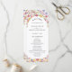 Machen Sie Ihren Hochzeitstag unvergesslich mit unserem wunderschön gestalteten, blumengeschmückten Hochzeitsprogramm. Der zarte, pastellfarbene Kranz der Blume bringt Ihnen eine romantische, im Garten inspiriert Touch. Personalisieren Sie die Karte mit Ihrem eigenen Text, und passen Sie den Stil, die Farbe und das Layout des Schriftartes einfach an Ihren Geschmack an, indem Sie auf die Schaltfläche "Weitere Einstellungen" klicken.
