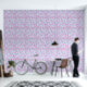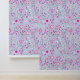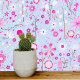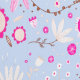 Einzigartig rosa, weiße und grüne Wildblume botanisches Blumenmuster auf einem blass pulverblauen Hintergrund. Originelle Kunst von Nic Squirrell.