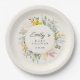 Maßgeschneiderter Wildblume Gartengarten | Babydusche Beige Papier Teller mit Ihrem Namen und Datum.
