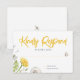 Lassen Sie sich mit dieser fröhlichen Wildblume Garden Wedding RSVP Card auf Ihre Hochzeitseinladung antworten. Diese Antwortkarten sind mit gelben und weißen Lüstern, Schmetterlingen und üppigen Blätter mit einer farbigen Libelle auf der Rückseite ausgestattet. Dieses skurrile Design ist perfekt für eine Hochzeit im Frühjahr oder im Sommer. Es ist lustig, leicht und luftig.