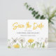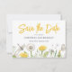 Bitte laden Sie Ihre Gäste ein, ihre Kalender für Ihre anstehenden Feiern mit dieser fröhlichen Wildblume Garden Wedding Save the Date zu markieren. Ein Feld mit gelben und weißen Lüstern, Schmetterling, Libelle und üppigen Blätter. Dieses skurrile Design ist perfekt für eine Hochzeit im Frühjahr oder im Sommer. Es ist lustig, leicht und luftig.