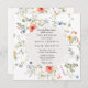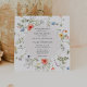Hochzeitseinladung mit einem Aquarellrahmen aus wilden Blume und Grünpflanzen. Passen Sie Ihre Daten an.