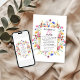 Teilen Sie Ihren besonderen Tag mit dieser lebhaften Wildblume Hochzeit Einladung. Das Design besticht durch eine farbenfrohe Auswahl an handbemalten Blüten, die Ihre Hochzeitsdetails in einem modernen, rechteckigen Rahmen umrahmen. Ideal für Party im Garten, für Boho-Feiern oder für Hochzeiten auf dem Land. Personalisieren Sie mit Ihren Namen, Datum, Ort und mehr für eine einzigartige Einladung.