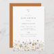 Wildblume Baby Shower Einladung. Farbenfrohe Wildblumen, dunkelgraue Typografie und die Farbabdeckung der Terrakotta Orange.