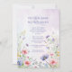 Der wunderschöne Lavendel, blau und rosa Aquarell mit sanften pastellfarbenen Wildblumen rund um die wunderschönen Schriftart wurden für diese schöne Hochzeitseinladung benutzt. Ideal für jede Hochzeit zu jeder Jahreszeit.