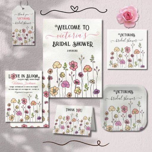 Wildblume Blumengarten Liebe in Bloom für Brautparty, Baby Dusche oder Verlobungsfeier. Handgezeichnete Whimsical Wildblume Blüte, die ideal für einen Garten, draußen oder boho fühlen! Enthält hübsche Blume in Pastellfarben. Das ist für ein Brautparty, aber es ist perfekt für eine Verlobungsfeier oder eine Babydusche. Handgezeichnet von McBooboos. Weitere Änderungen finden Sie unter Anpassen dieser Vorlage. Am unteren Rand sehen Sie "Gewollt, um dieses Design noch weiter zu anpassen? Klicken Sie auf das EDIT-Tool mit Design.