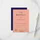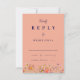 Diese elegante und romantische Wildblume fallen marineblau peach Hochzeit RSVP Gehäuse Karte ist so konzipiert, um alle die Wildblume Hochzeit im Herbst Einladungen zu ergänzen. Mit einer harmonischen Mischung aus Herbstfarben wie gebranntem Orange, Terrakotta, Korallen, Pfirsich, gebranntem Nagel, lila, gelben und erdigen Grüntönen erweckt diese Karte das Wesen einer Herbstfeier. Die zarten, handbemalten Aquarellfarben erinnern an die Wärme und den Charme der Saison. Die pfirsichblauen und marineblauen Untergründe verleihen dem Design Eleganz, während die skurrilen Blumen in den Farbtönen Orange, Gelb, gebranntes Holz, Orange, Pfirsich, Korallen, lila und Rosa eine Touch der Naturschönheit vermitteln. Die elegante Schrift und die moderne Typografie verleihen der Karte Eleganz und machen sie zum idealen Ort, um Ihre Gäste zu einem besonderen Tag einzuladen. Diese von der Künstlerin Catherine Sweetman entworfene RSVP-Karte bewahrt das gemütliche und intime Ambiente einer boho-inspiriert Feier und bietet Ihren Gästen ein individuelles Antwortformat. Das zeitlose Design und die einladenden Farben sorgen dafür, dass diese Karte der perfekte Begleiter für Ihre Hochzeitsreise ist und Ihnen eine herzliche und herzliche Touch für Ihre Veranstaltung bietet.