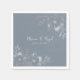 Elegante, Vintage, blumengeschmückte, personalisiert staubblaue Hochzeitsnapkins mit ausgeklügelten Periwinklen und einfachen handgeschriebenen Schriften.