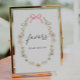 Favors-Zeichen mit einem Aquarellrand von Wildblumen und einem rosa Bogen, um der Sammlung im Adore Paper Co. Zazzle Shop zu entsprechen.