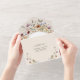 Wildblume QR Code in einer Einladung. Dieses stilvolle und elegante All-in-One Einladungs-Einladungs-Angebot beinhaltet wunderschöne handbemalte Aquarell-Wildblumen, die als hübscher Rahmen angeordnet sind, sowie eine RSVP-Karte mit QR-Code. Finden Sie passende Artikel in der Boho Wildblume Wedding Collection.