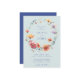 Dieses Design zeichnet sich durch einen zarten Aquarellkranz aus Wildblumen in den Farbtönen Blau, Rot, Orange, Violett und Gold aus. Ideal für Hochzeiten im Frühling und Sommer.