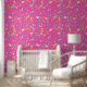 Fun Hot Rosa Akzent Tapete mit einem Muster von Wildblume Aquarellen.