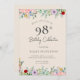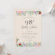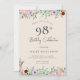 Einladungen zum Geburtstag von Erwachsenen | Rustikale Beige Blüte Elegant 98. Einladung Dieses klassische und Vintage Design verfügt über eine blumengeschmückte Wildblume rustikale böhmische einfache Thema und Script Typografie auf einem beigen Hintergrund. Personalisieren Sie die Einladung mit Ihren Daten und wenn Sie gewollt, um den Stil und die Platzierung des Textes weiter zu ordnen, klicken Sie bitte auf den Button "Weitere Anpassung". Für weitere Produkte in dem gleichen Thema besuchen Sie meinen Shop: Youtopia Offiziell.