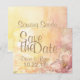 Die Samen der Liebe Wildblume Save the Date Aquarellfarben in Rose Quarzpinke, Eiskaffetext und Hellgelb.