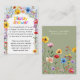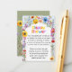 Laden Sie sich mit dieser grünen Wildblume "Baby in Bloom"-Weinkarte zum Vergnügen ein. Mit einer farbenfrohen Aquarellwiese an der Vorderseite und einem passenden, grünen Blumenmuster auf der Rückseite, lädt diese fröhliche Karte die Gäste dazu ein, ein paar Windeln mitzubringen, um einen Preis zu gewinnen. Eine perfekte Koordination für Ihre Wildblume Baby in Bloom Baby Dusche Thema.