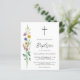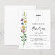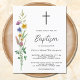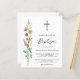 Dieses Budget Taufe Einladung ist mit Wildblumen und ein Kreuz geschmückt. Einfach anpassbar. Original Wasserfarbe © Michele Davies.