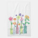 Reizendes Küchenteetuch, das Frühlings-Blumen in den antiken Flaschen feiert. Perfektes Vintages Geschenk für die gut entworfene Küche.