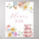 Blume Bar Sign mit bezaubernden Blumenrahmen und gestapelte rosa Teetassen. Matching Kollektion im Adore Paper Co. Zazzle Shop.