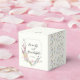 Delikate Wildblumen schmücken ein Monogramm-Wappen für Ihre elegante Hochzeit. Die Wildblumen werden in einem für die äußeren Seiten verwendeten Muster wiederholt. Entworfen für die quadratische Würfel Form Namen des Paares im Wappen. Ihr eigenes süßes Sprichwort, oder verwenden Sie das empfohlene. Die moderne Kalligraphie ist anmutig und elegant. Verbunden mit einem klassischen Serifenmützen-Schriftart. Die Hintergrundfarbe ist Elfenbein, kann aber durch einen anderen Farbton ersetzt werden. Personalisieren Sie Ihre Nachricht und passen Sie, wenn Sie möchten, die Schriftart und Farbe an.