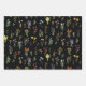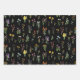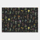 Wildblume Wasserfarbe Schwarzer Botanischer Flor Geschenkpapier Set