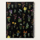 Ein wunderschönes Aquarelldesign mit Wildblumen auf schwarzem Hintergrund. Eine farbenfrohe Anordnung wilder Blume in einem wilden, blumengeschmückten Frühlingsgarten. Ein ideales Design für jeden, der Aquarellflorale, Illustrationen zur Wildblume und botanische, thematische Frühlingskunst Lieben, die sich durch eine saisonale Zuhause oder ein Geschenk für einen ganz besonderen Gaumen auszeichnen.