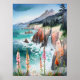 Wildblume Wasserfarbe Serene Küste Landschaft Poster