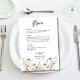 Diese Aquarellfarben-Wildblumen Elegant Dusty Blue Wedding Menu bietet schöne blaue und gelbe Wildblumen, Menüoptionen, optionalen Text auf der Rückseite und moderne Typografie. Ihre Hochzeitsgäste haben die Liebe, bei Ihrer Hochzeit eine Auswahl an Speisen zu haben. Dieser Eintrag koordiniert mit der Dusty Blue Wildblumen Elegant Wedding Suite.