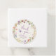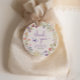 Niedliche, helle Baby-Girl-Dusche danke Ihnen Gastgeschenk-Tags mit "danke" und "eine kleine Wildblume ist auf ihrem Weg" in einem stilvollen Lavendelskript, boho Wasserfarben eines Kranzes von lila, rosa, pfirsichfarbenen und gelben Wildblumen, und einem lila Schmetterling. Personalisieren Sie den Namen und das Duschdatum der Mutter in einfachen Lavendel und graue Typografie.