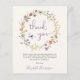 Eine elegante und preisgünstige, helle, cremefarbene Babydusche mit Dankeschön-Karte in einem lila, stilvollen Lavendel-Drehbuch, boho-inspiriert Aquarellen mit einem Kranz aus lila, rosa, pfirsichfarbenen und gelben Wildblumen und einem lila Schmetterling. Personalisieren Sie Ihre Dankeschön-Nachricht und fügen Sie Ihren Namen in ein signaturähnliches Skript hinzu, oder verlass leer für eine handschriftliche Notiz.