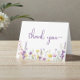 Eine elegante Babydusche Dankeschön-Karte mit "danke" in einem stilvollen lila Drehbuch, und skurrile boho-inspiriert Aquarellfarben mit lila, rosa und gelben Wildblumen. Im Inneren personalisieren Sie Ihre Dankeschön-Nachricht und fügen Sie Ihren Namen in ein signaturähnliches Skript hinzu, oder verlass leer für eine handgeschriebene Notiz.