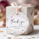 Elegante, geschlechtsneutrale Babydusche bedankt sich bei den Anhängern für Ihre Gastgeschenke, die Aquarelltöne von zarten Wildblumen und "Danke" und "Es gibt ein süßes kleines Baby in Blüte" in einer stilvollen Schrift und einfachen Typografie. Persönlich mit dem Namen des Mami-to-be- und Duschdatums.
