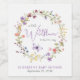 Elegantes Weinetikett für Ihre kleine Mädchendusche mit "einer kleinen Wildblume ist unterwegs" in moderner grauer Typografie und einem schicken Lavendel-lila Drehbuch, einem boho-inspiriert Aquarellkranz aus lila, rosa, pfirsichfarbenen und gelben Wildblumen und einem lila Schmetterling. Fügen Sie den Namen und das Duschdatum der Mutter in einfachen Lavendel und graue Typografie.